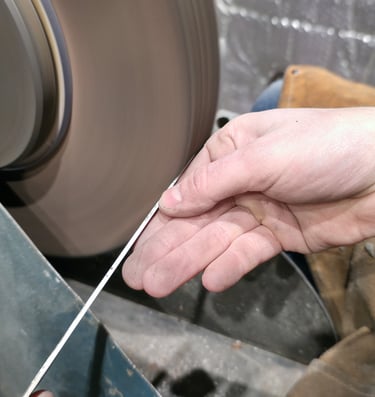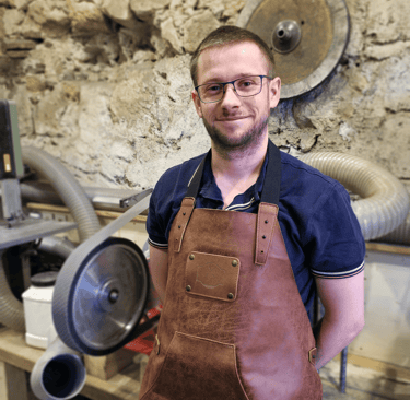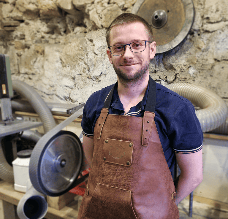En 2021, j'entame une reconversion professionnelle et intègre une classe de CAP au CFAI de Thiers, en alternance entre le Languedoc-Roussillon et l’Auvergne pendant deux ans. Durant cette période d'apprentissage, les couteaux de cuisines et de table sont les plus présents dans mon quotidien, les premiers ayant une attache tout particulière dans mon cœur.